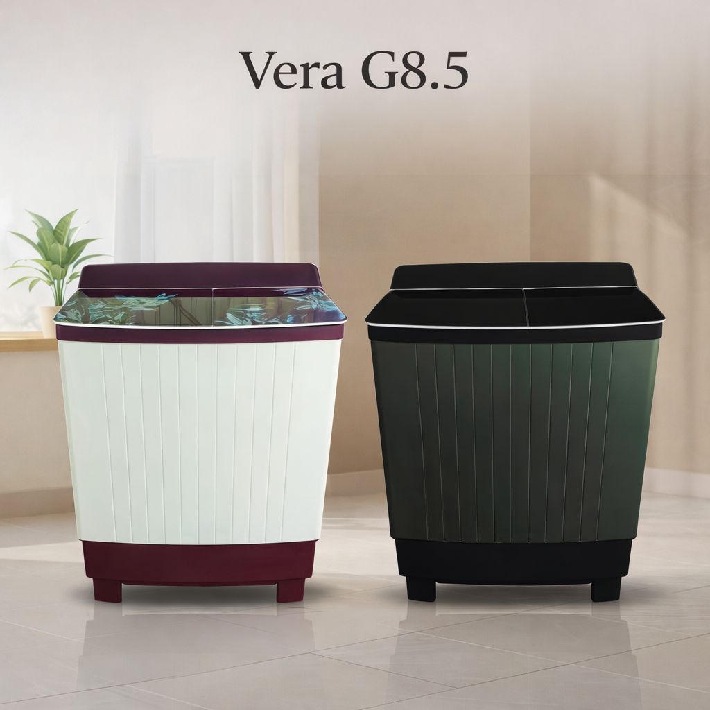 Capacity Wash: 8.5 kg Spin: 5.5 kg Material Rust-Free PPCP Body Toughened Full Glass Lid Motor Capacity Wash: 125 W Spin: 45 W Power Supply 220–230V AC | 50Hz Controls 4-Knob Retro Key Features Dual Water Inlet Dual Pulsator Magic Filter System Collar Scrubber Rust-Free Technology Buzzer & Castor Wheels